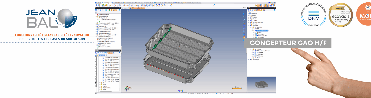 Au sein du bureau d’études, vous interviendrez sur la conception et le développement d’outillages de thermoformage :